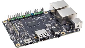 Среди других особенностей платы - один хост-порт USB 2.0 Type-A плюс разъем USB Type-C для питания, один видеовыход MIPI Display Serial Interface (DSI), вход 12 В постоянного тока, аналоговый звук, разъем расширения для шины RS485, шины CAN, двух микрофонных входов и выхода динамика, а также 40-контактный разъем ввода/вывода общего назначения (GPIO), "частично совместимый" с Raspberry Pi и имеющий шины UART, SPI, I2C и I2S плюс возможности широтно-импульсной модуляции (PWM).